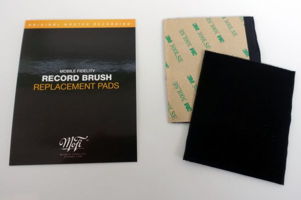 Mobile Fidelity Sound Lab replacement brush pads work on the Mobile Fidelity Sound Lab Record Brush, the best record-cleaning brush available. We recommend replacing the pads after cleaning 100-150 records or when the pad begins to show wear. But don’t worry. Worn-out pads are quickly and inexpensively replaced. Carefully peel off the old pad, making sure to remove all the old adhesive. Then, peel the wax backing from the OEM replacement pad and line it up with the edges of the brush, ensuring enough material overlap covers both the front and rear lips of the brush. Finally, slowly and firmly press the new replacement pad onto the brush until it’s completely adhered. Look to see that no bubbles or folds exist, and check that the pad lays flat on the brush.